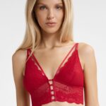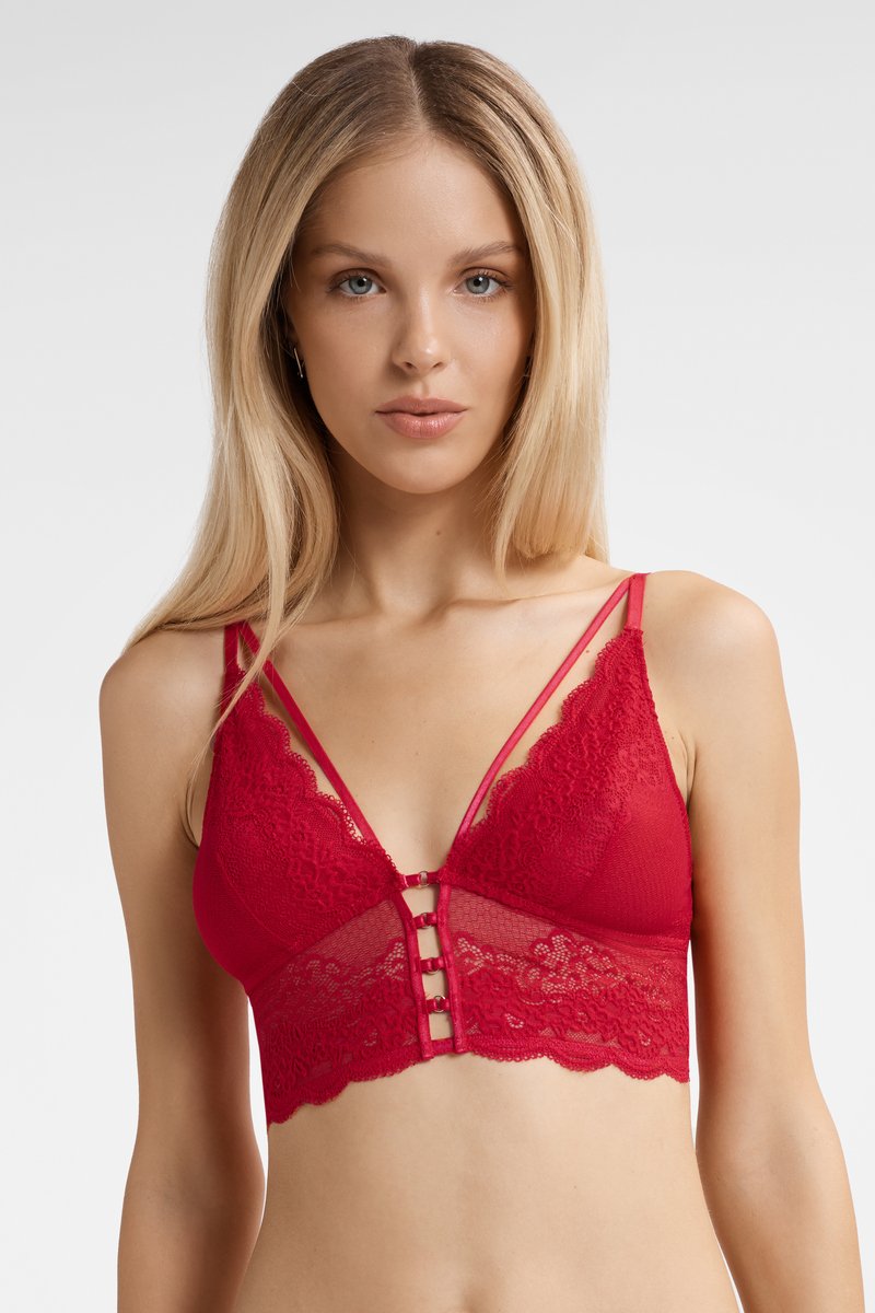 Кружевной бралетт с мягкой чашкой без кости. Трехступенчатая застежка. Несъемные регулируемые бретели. Состав: Основная ткань: 84% полиамид, 16% эластан Кружево: 90% полиамид, 10% эластан40150 TRIXIE/33X Бюст