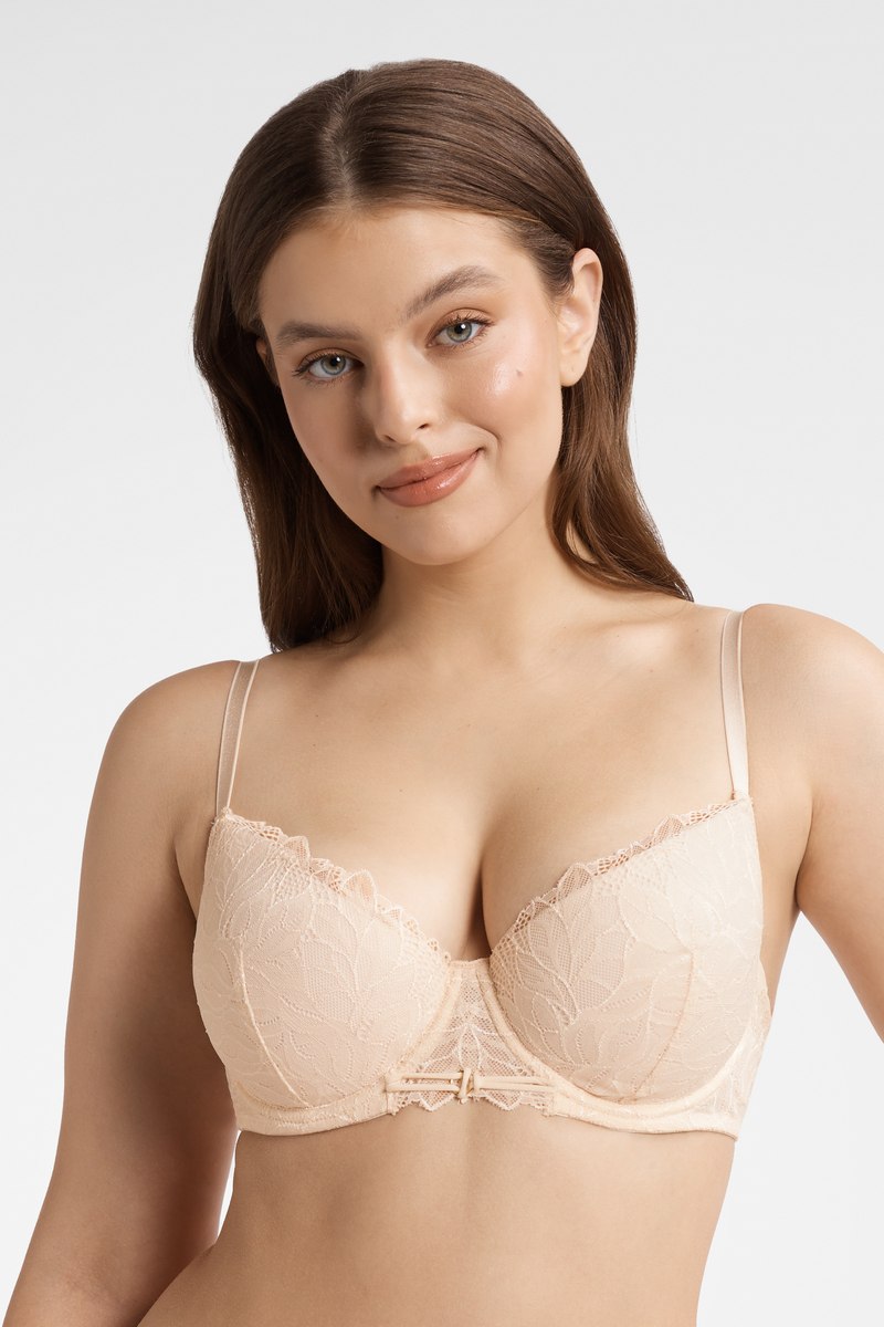 Бюст из серии THIA от европейского производителя Esotiq. Чашка на кости, со съемным пуш-ап. На базе чашки KASSIDY. Выполнен из кружева. Внутри чашка с хлопковым подкладом. Трехступенчатая застежка на спине. Несъемные регулируемые бретели. Cостав: кружево 90% полиамид, 10% эластан; сетка 72% полиамид 28% эластан; чашечки 100% хлопок.40160 THIA/12X Бюст