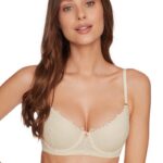 Кружевной бюстгальтер со съемным пуш-ап на кости. Трехступенчатая застежка. Съемные регулируемые бретели. Подклад чашек выполнен из хлопка. Кружево: 86% полиамид, 14% эластан Сетка: 95% полиамид, 5% эластан Подклад чашки: 100% хлопок40341 TROPHY/02X Бюст