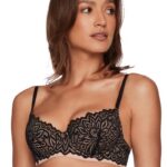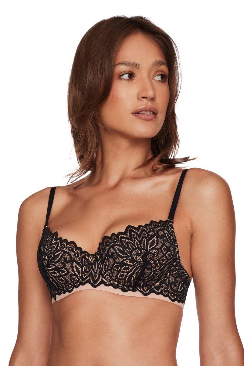 Кружевной бюстгальтер со съемным пуш-ап на кости. Трехступенчатая застежка. Съемные регулируемые бретели. Подклад чашек выполнен из хлопка. Кружево: 86% полиамид, 14% эластан Сетка: 95% полиамид, 5% эластан Подклад чашки: 100% хлопок40341 TROPHY/61X Бюст