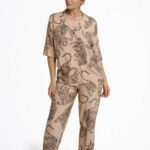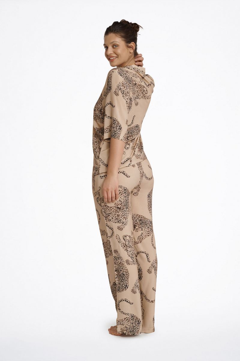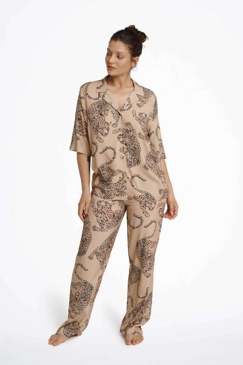 Нежная, приятная к телу пижама LOVABLE свободного кроя. Рубашка на пуговицах. Принт изделия в стиле леопарда.40626 LOVABLE Пижама женская со штанами