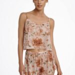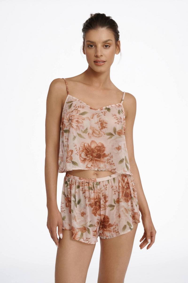 Комплект женский с короткими шортами. Топ на тонких регулируемых бретелях. Выполнен из микросетки.41020 IONA Пижамный комплект женский