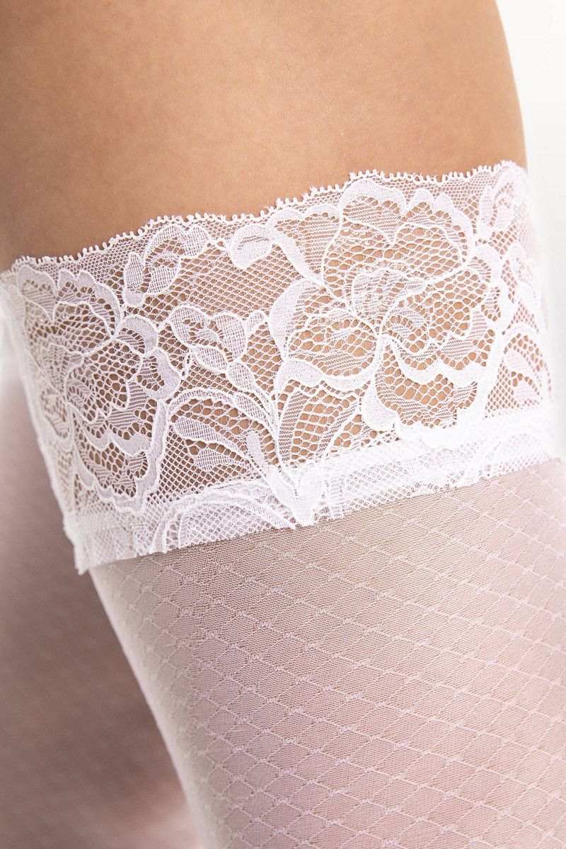Необычные классические чулки с цветочным кружевом и нежной сетчатой структурой. Идеальный выбор на свадьбу.