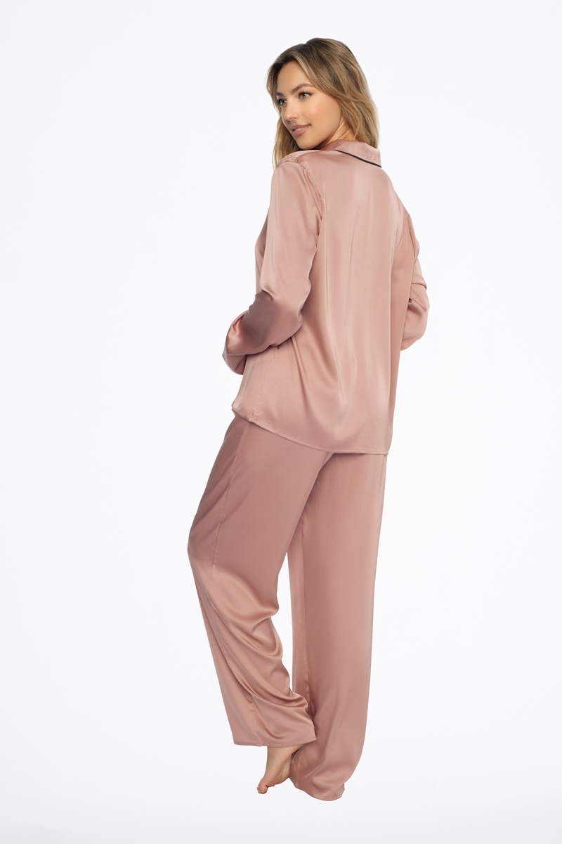 Пижама женская со штанами 41490 DILL. Рубашка свободного кроя на пуговицах. Штаны с поясом на резинке. Материал - эластичный сатин.41490 DILL Пижама женская со штанами