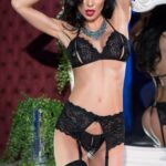 Комплект 4220 изготовлен из мягкого эластичного кружева. Состоит из 3 предметов с украшающими элементами (бантик, подвеска): - эротический бюстгальтер с вырезами; - трусы-стринги; - пояс.4220 Set Комплект из 3 частей