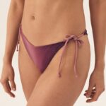 Трусы купальные с люрексом от европейского производителя Esotiq. Градиент цвета. По бокам узкие завязки. V-образный пояс. Состав: Подклад: 89% полиэстер, 11% эластан.