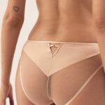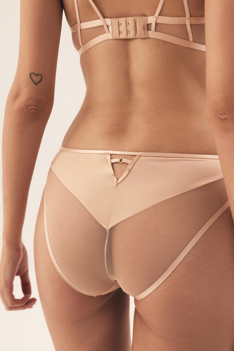 Слипы Nuts в золотисто-коричневом оттенке. Они мягко обвивают тело, подчеркивая изгибы и создавая гладкую линию бедер. Их сверхлегкая структура обеспечивает мягкость на ощупь и воздухопроницаемость, благодаря чему модель отлично подходит для повседневной носки. Материал передней части слипов выполнен из ультралегкой нежной микрофибры, тем временем как задняя часть дополнена прозрачным близким к телу микротюлем и золотым колечком. Хлопковая ластовица. Состав микротюля: 90% полиамид, 10% эластан.43161 NUTS/82X Трусы слипы