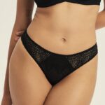 Чёрные стринги Marvel сочетают в себе классическую элегантность и чувственность. Мягкая резинка с ажурной растительной вышивкой облегает переднюю часть, а прозрачная задняя часть с глубоким вырезом деликатно подчёркивает округлости. Спереди на подкладе из микросетки. Состав: Кружево: 90% полиамид, 10% эластан; Сетка: 89% полиэстер, 11% эластан; Ластовица: 100% хлопок.