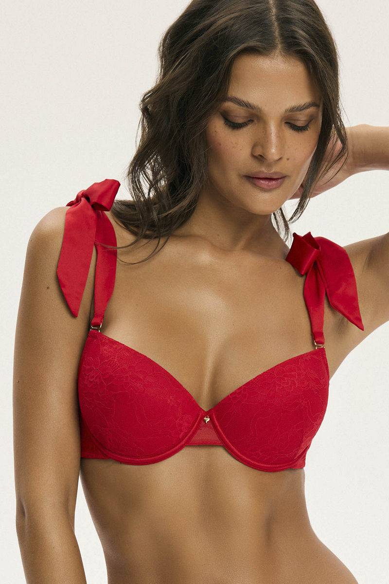 Бюстгальтер CEST от европейского производителя Esotiq. Чашка на кости со съемным пуш-ап, покрыта тонким цветочным кружевом. Внутренний подклад чашек хлопковый. Съемные классические регулируемые бретели. В комплекте идут нарядные атласные бретели. Спинка кружевная. Золотые детали. Декор - подвеска. Состав: кружево 78% полиамид, 22% эластан; сетка 70CD, 75BCD, 80C 89% полиэстер, 11% эластан; сетка 70EF, 75E, 80D, 85CD 68% полиэстер, 32% эластан; подкладка чашек 100% хлопок.