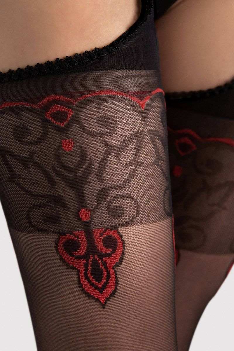 Прозрачные колготки с восточным рисунком. Имитация подвязок и чулок из покрытых нитей в 3D-технологии для повышения прочности и упругости. Эта технология обеспечивает ощущение комфорта для вашей кожи и повышенную эластичность для идеальной посадки. Плоский шов и невидимо усиленная часть носка.5028/O AMOUR ROGUE 20 DEN Чулки с поясом