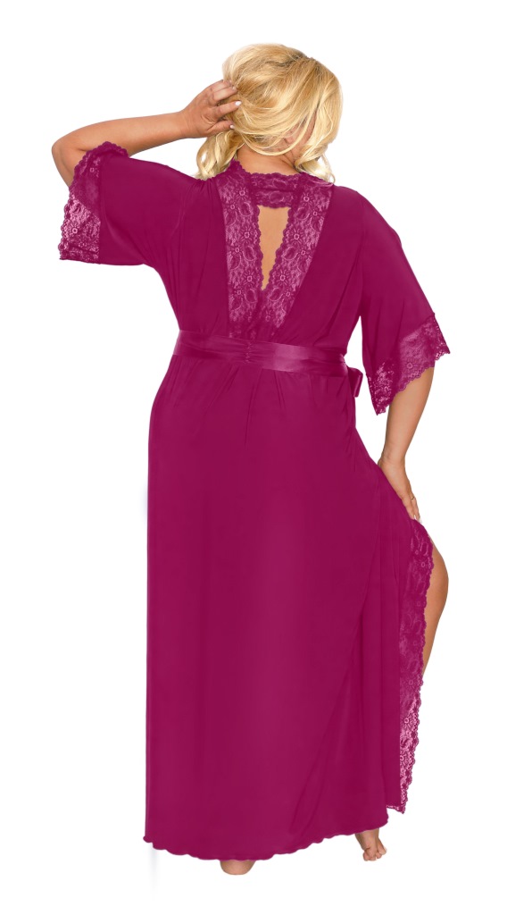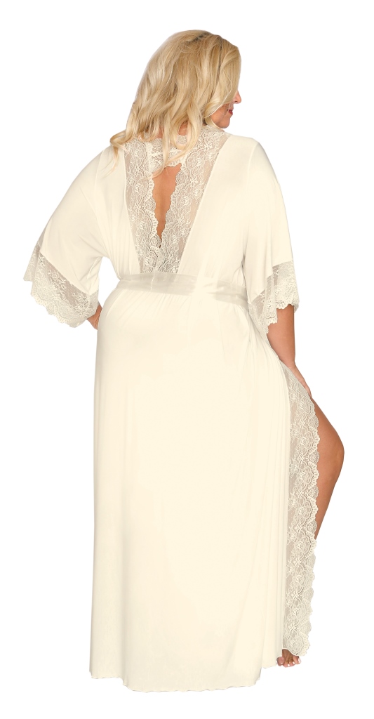 Длинный пеньюар арт. 505 выполнен из микрофибры Венеция, на запах. Глубокий вырез на груди и низ коротких рукавов декорированы изящным кружевом. Спинка с глубоким -образным декольте декорирована кружевом. Широкий атласный пояс в комплекте.505 пеньюар