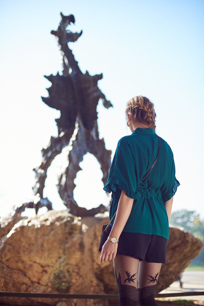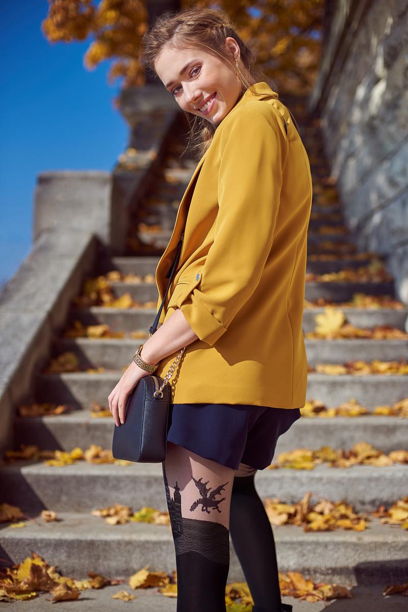 Узорчатые колготки украшены оригинальным дизайном, вдохновленным Краковом. Отсутствие выделенной части трусиков и выделенной части пальцев делают черные колготки, имитированные под чулки, еще более удобными. Колготки изготовлены из мягких эластичных волокон. Верхняя часть колготок толщиной 20 ден, поэтому рисунок хорошо виден.