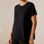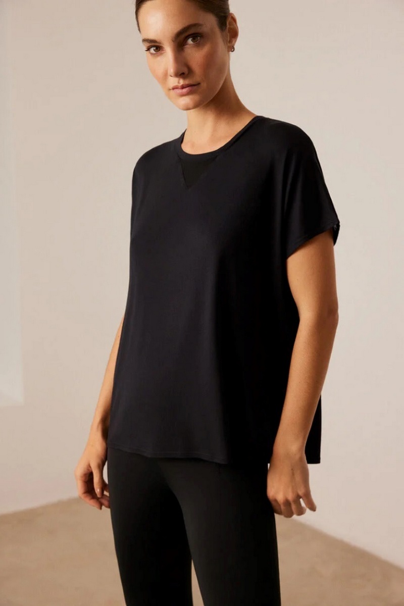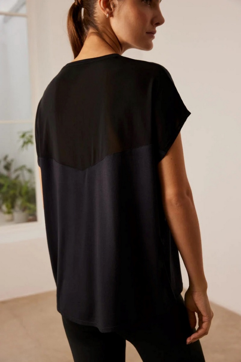 Спортивная футболка с короткими рукавами и прозрачной отделкой из тюля на шее и спине. Идеально сочетается с легинсами и спортивными топами.70832 Футболка спортивная