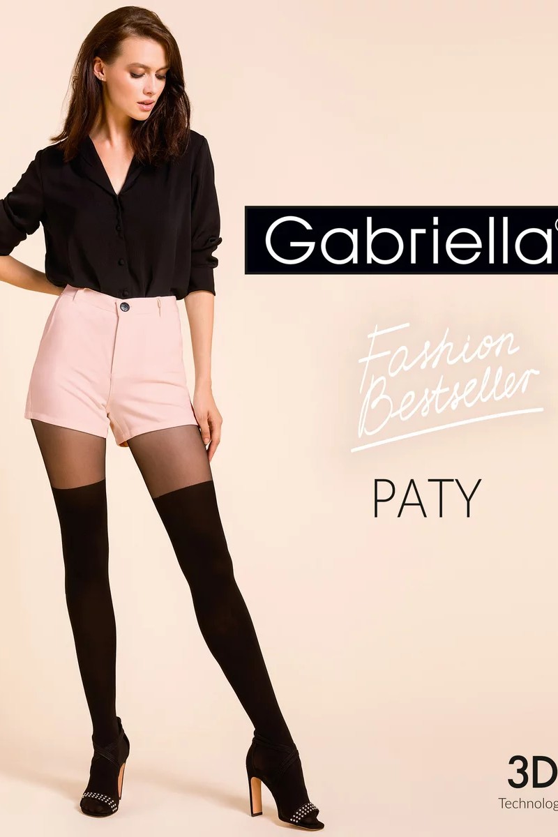 Колготки, имитирующие чулки, Paty - удобное решение для женщин, которые любят высокие чулки. Гладкие черные колготки встречаются в середине бедра с тонким прозрачным трикотажем, который придает образу женственный шарм. Украшает ноги трикотаж в двух толщинах, сочетающий в себе достоинства колготок 60 den и колготок 20 den в середине бедра. Хлопковый клин с плоским швом повышают комфорт использования. Невидимое усиление на пальцах ног позволяет черным колготкам сочетаться с любой обувью. Структура модных колготок делает изделие более прочным и устойчивым к затяжкам.728 PATY 20/60 DEN Колготки