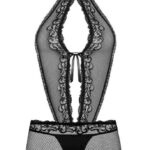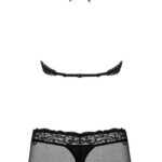 Сорочка трикини из коллекции 830, лиф из широких полос, на груди можно завязать бантик, на спине застёжка на крючок, на шее сзади тонкие завязки, спина полностью открыта. Юбочка из сетки подчёркивает стройность бёдер. Сорочка комплектуется трусиками стрингами.830 Chemise Сорочка