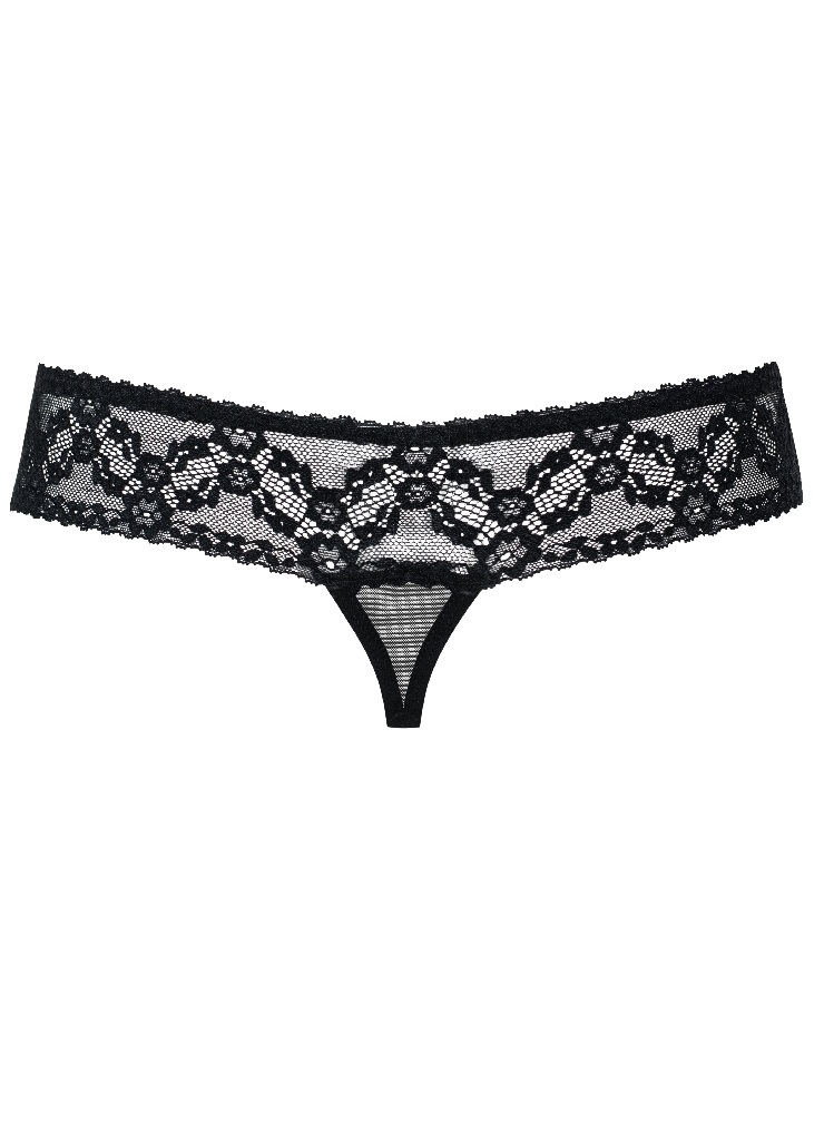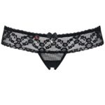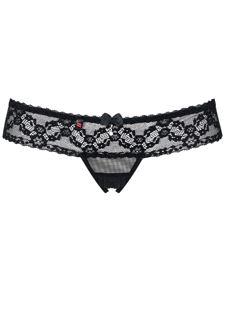 Пикантные трусики стринги серии 837 с открытой ластовицей, на широкой кружевной кокетке. Декорированы атласным бантиком и подвеской.837 Thong-1 crotchless Трусы стринги