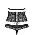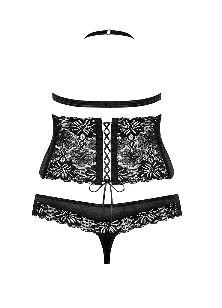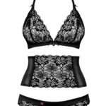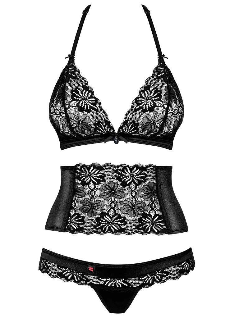 Великолепный комплект 846 SEG-1 представлен 3 предметами: бюстгальтер, высокий пояс, кружевные стринги. Восхитительное сочетание материалов: кружева с цветочным принтом и гладкой ткани с легким блеском. Кружевной бюстгальтер с многоуровневой застежкой и регулируемой по длине бретелью через шею.Высокий пояс со шнуровкой сзади обеспечивает идеальную подгонку под фигуру. Трусики-стринги с низкой посадкой.846 Seg-1 Комплект из 3 частей