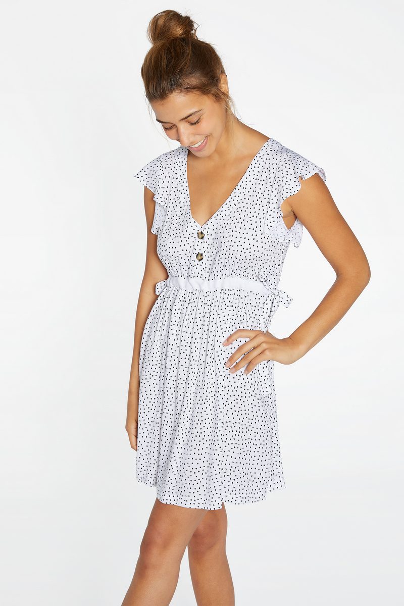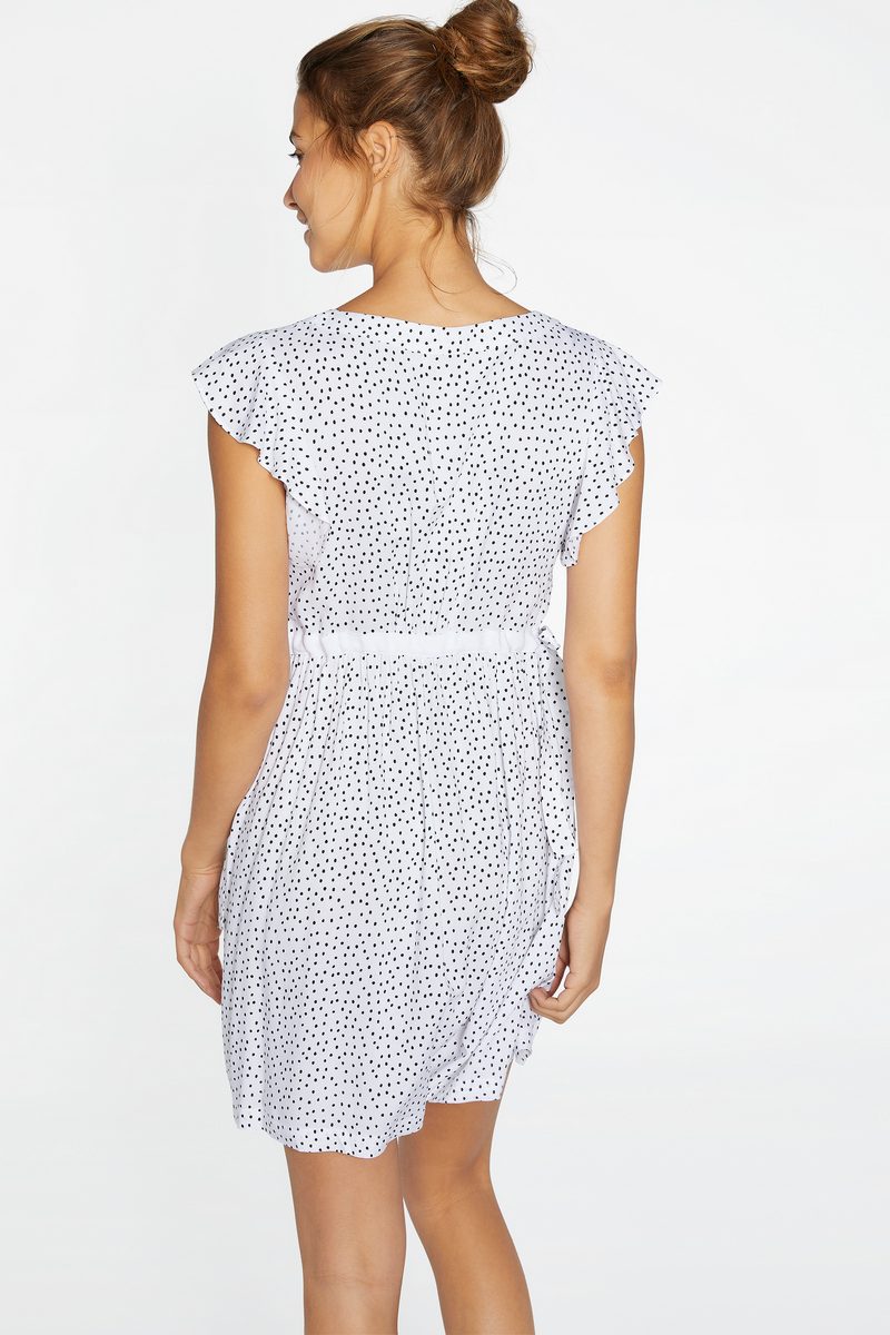 Туника 85717 от европейского производителя Ysabel Mora, принт в мелкую точку. Нежный вискозный материал, изделие с поясом-кулиской и рукавами-воланами. Туника дополнена с планкой из пуговиц.85717 Блуза купальная