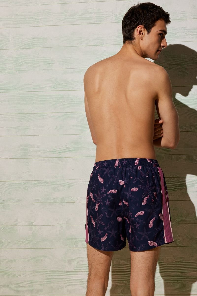 Мужские купальные шорты средней длины от Ysabel Mora. Изделие на завязках, с боковыми и задним карманами, выполнено из быстросохнущей ткани.90091 Шорты купальные мужские
