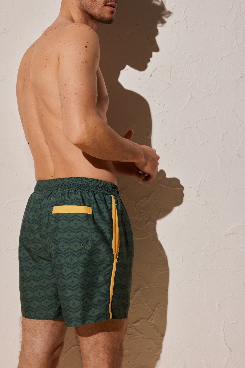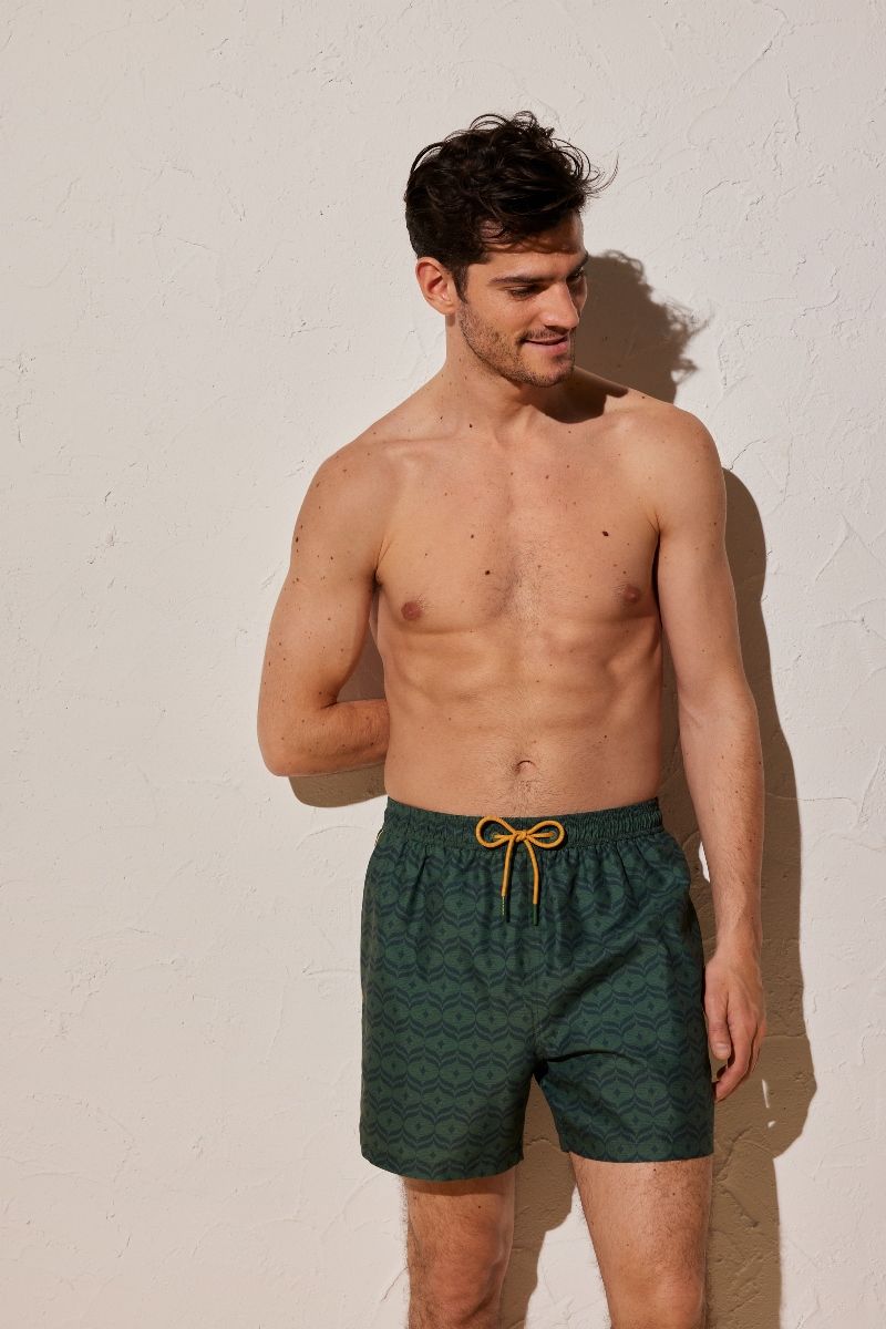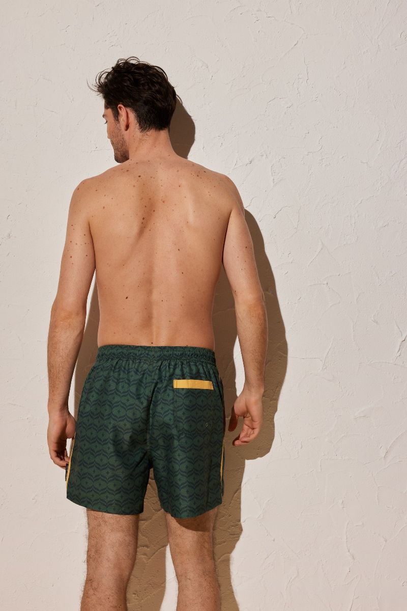 Мужские купальные шорты средней длины от Ysabel Mora. Изделие на завязках, с боковыми и задним карманами, выполнено из быстросохнущей ткани.90093 Шорты купальные мужские