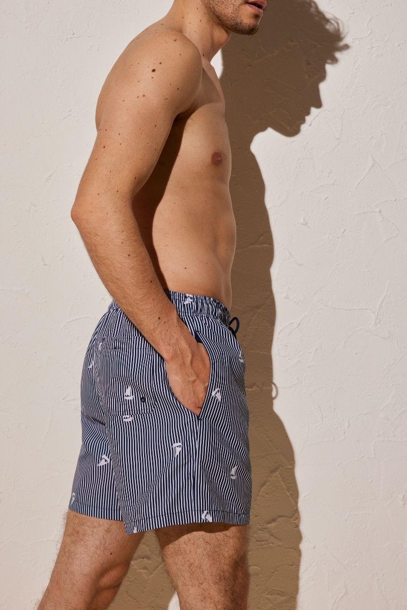 Мужские купальные шорты средней длины от Ysabel Mora. Изделие на завязках, с боковыми и задним карманами, выполнено из быстросохнущей ткани.90126 Шорты купальные мужские