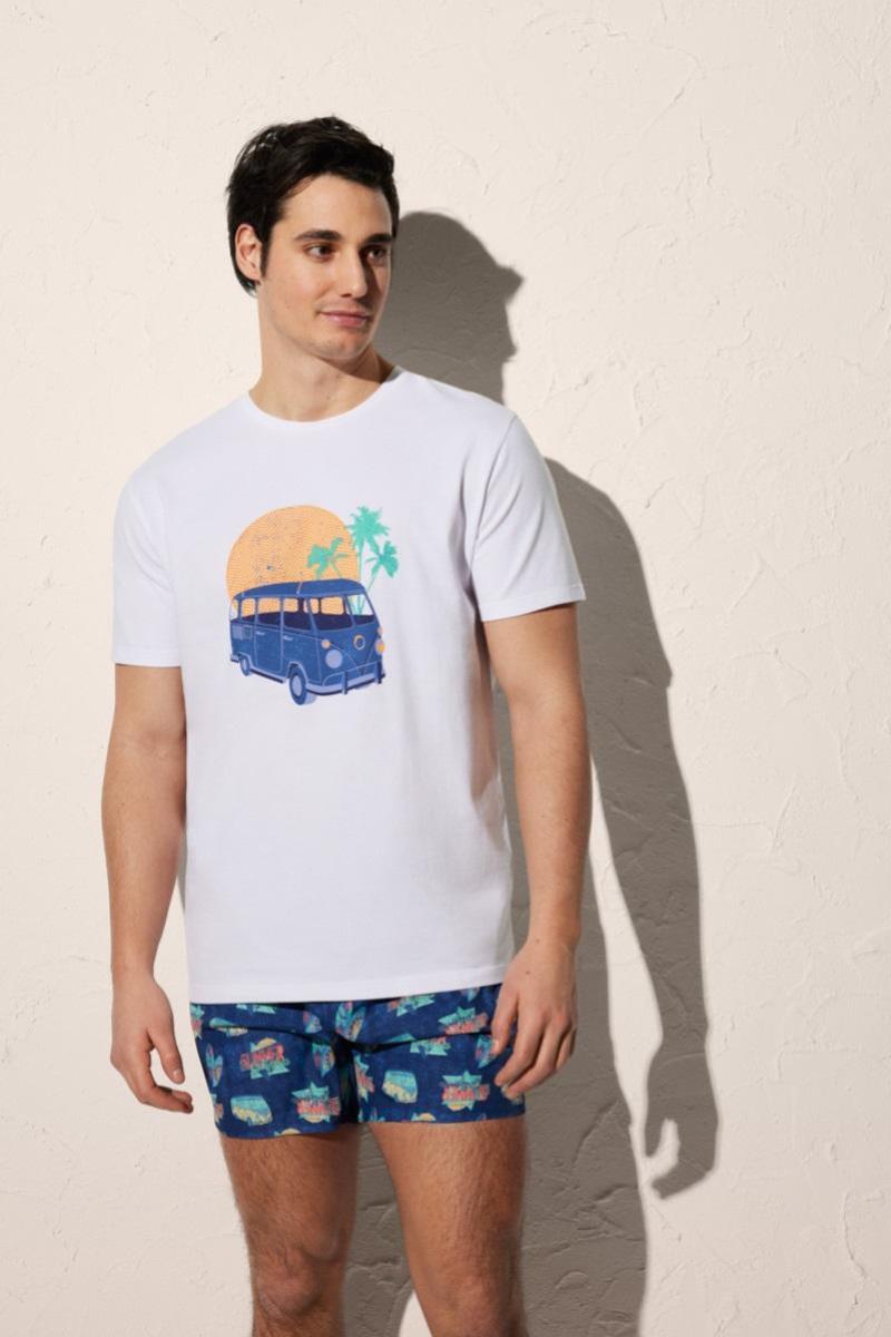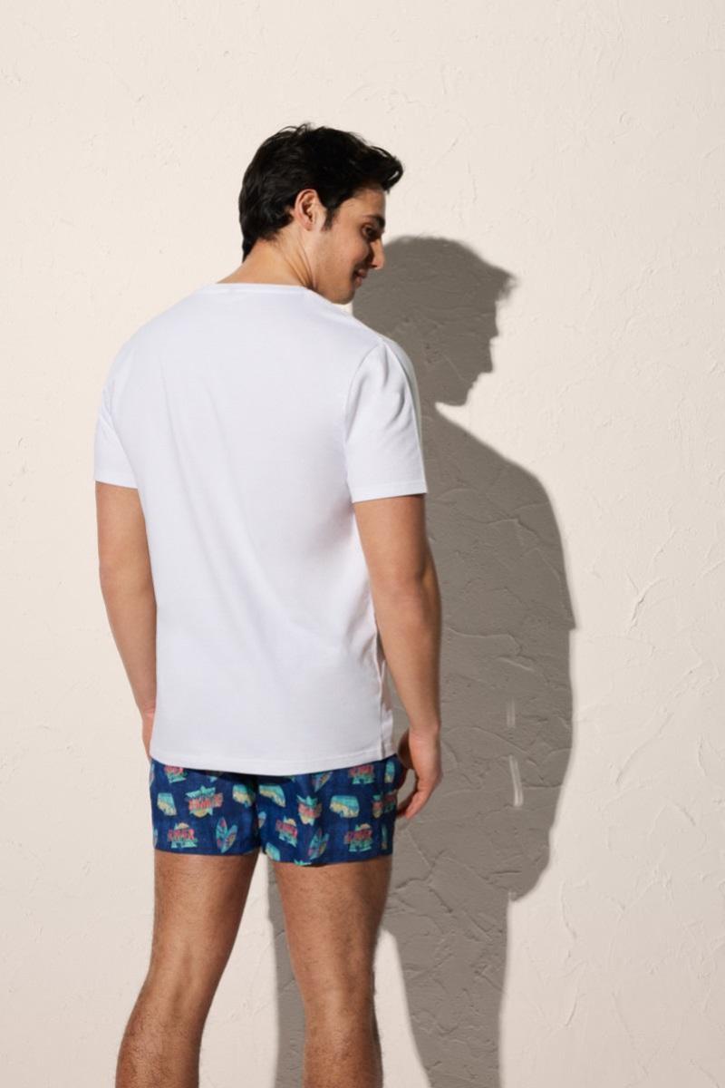 Хлопковая пляжная футболка от европейского производителя Ysabel Mora. Круглый вырез в области горловины. Декорирована принтом.90502 Футболка мужская