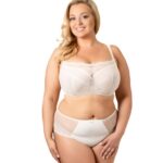 Бюстгальтер-топ -204 выполнен с мягкими чашками на косточках, с дополнительными боковыми поддержками, чашки шитые из неэластичной сетки, снаружи покрыты гипюром, спинка из стабилизирующей сетки, Бретельки регулируются по длине, не отстгиваются, на спине застежка-удлинитель, фурнитура металлическая крашеная.