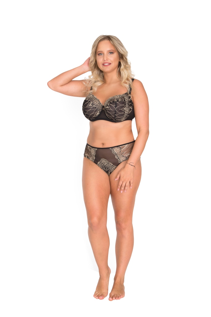 Бюстгальтер -30 выполнен на косточках, с боковыми поддержками, чашки мягкие шитые из сетки с вышивкой телесной нитью с Т-образным швом и боковым подкроем, продублированы черной сеткой. Бретельки пришиты, регулируются по длине, на спине застжка - удлинитель на крючках, фурнитура металлическая крашеная.A-30 M бюст