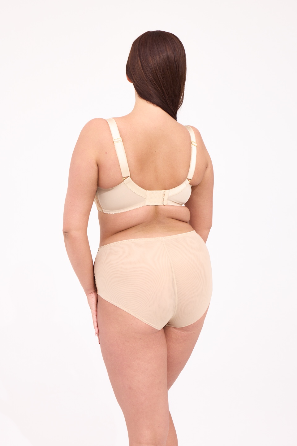Бюст-топ -64 мягкий, на косточках, с дополнительными боковыми поддержками, чашки шитые из телесной сетки, снаружи из эластичной сетки с принтом, декорированы вышивкой телесной нитью и люрексом, пояс из стабилизирующей сетки, бретельки пришиты, регулируются по длине, на спине застжка-удлинитель, фурнитура металлическая цвета желтого золота.A-64 M бюст-топ