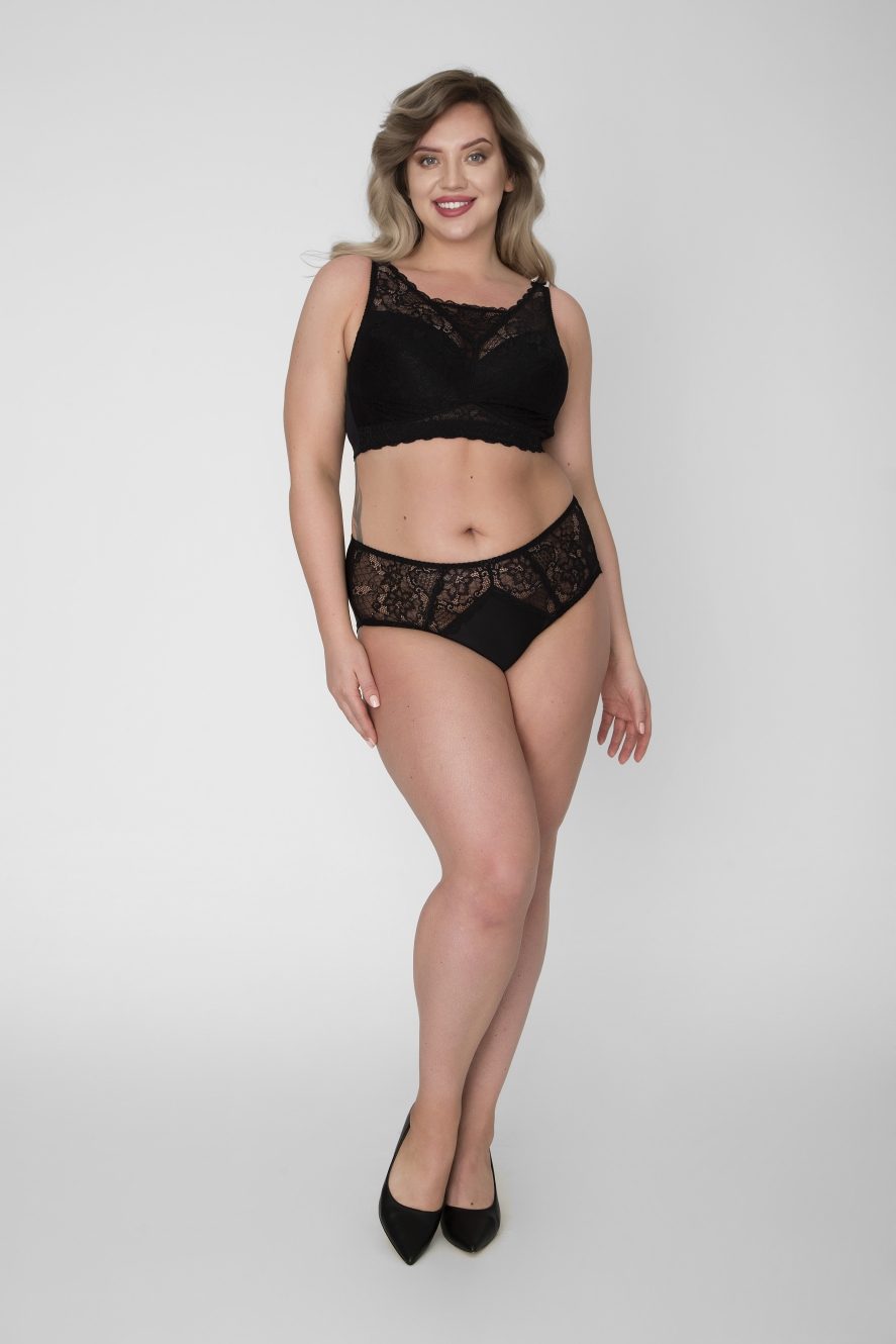 Бюстгальтер-топ -78 выполнен с мягкими чашечками без косточек, чашки шитые из кружевного полотна, продублированы эластичной тканью в тон, под грудью пришита широкая эластичная резинка, спинка из стабилизирующей сетки, Бретельки регулируются по длине, не отстгиваются, с подвижной фурнитурой-крючком для соединения бретелей на спине. На спине застжка на удлинитель на 2 и 3 крюка.