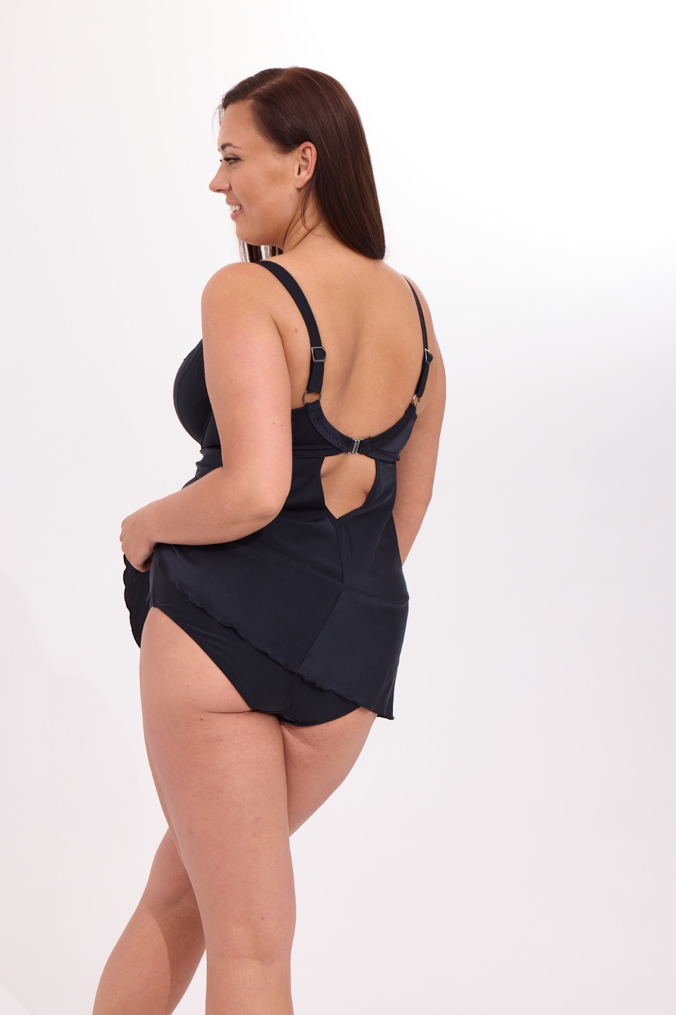 Топ-танкини 288. Лиф мягкий, с косточками, продублирован сеткой, бретельки регулируются по длине, на спине застжка, юбочка расклешнная. Фурнитура металлическая цвета черного никеля. В комплект к танкини можно подобрать трусы из ассортимента ТМ .AN288 M топ-танкини пляжный