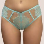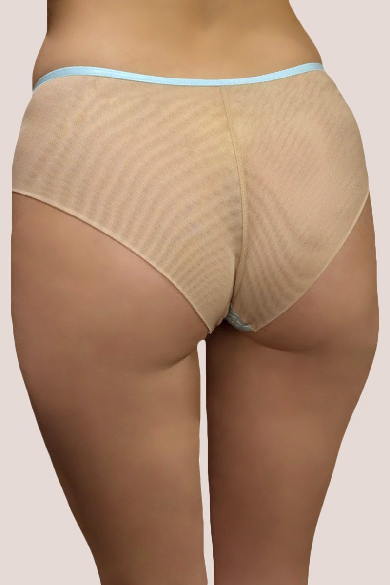 Трусы слипы AQUAMARINE от европейского производителя Subtille. Модель комфортной средней посадки. Выполнены из нежного кружева и микротюля, сзади из двойного микротюля. Ластовица хлопковая. Фирменный логотип бренда.AQUAMARINE SEE BLUE Трусы слипы