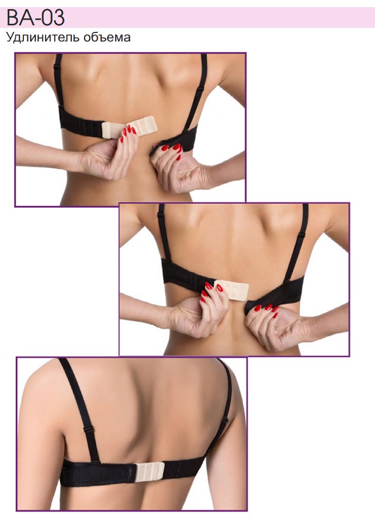 Очень простой и быстрый способ для увеличения объема любимого бюстгальтера. Универсальное расположение крючков подходит к любым стандартным застежкам.BA-03 Удлинитель объёма