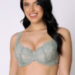 Бюст BELLA от европейского производителя Subtille в нежном оливковом цвете на бежевом подкладе. Чашка выполнена из тонкого сшивного поролона, покрытого сверху цветочным кружевом. Прекрасно собирает грудь и создает легкий эффект push up. Декоративная подвеска с кристаллами дополнит Ваш нежный образ!