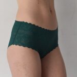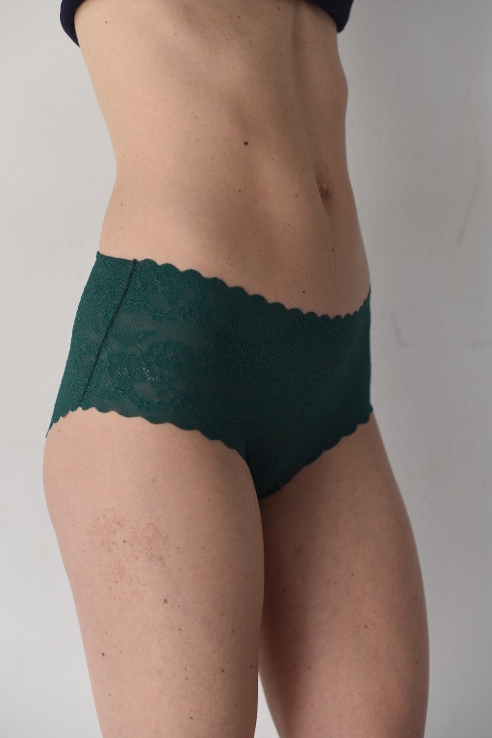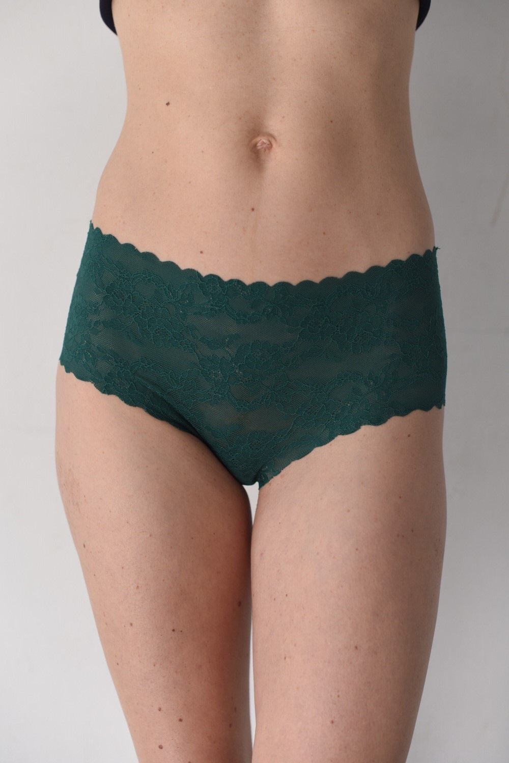 Трусики женские с высокой линией талии выполнены из кружевной ткани с декоративной обработкой краев в цвете бутылочный зеленый, ластовица проложена 100 хлопком. Трусики не заметны под одеждой.Bellie Maxi трусы (зелен)