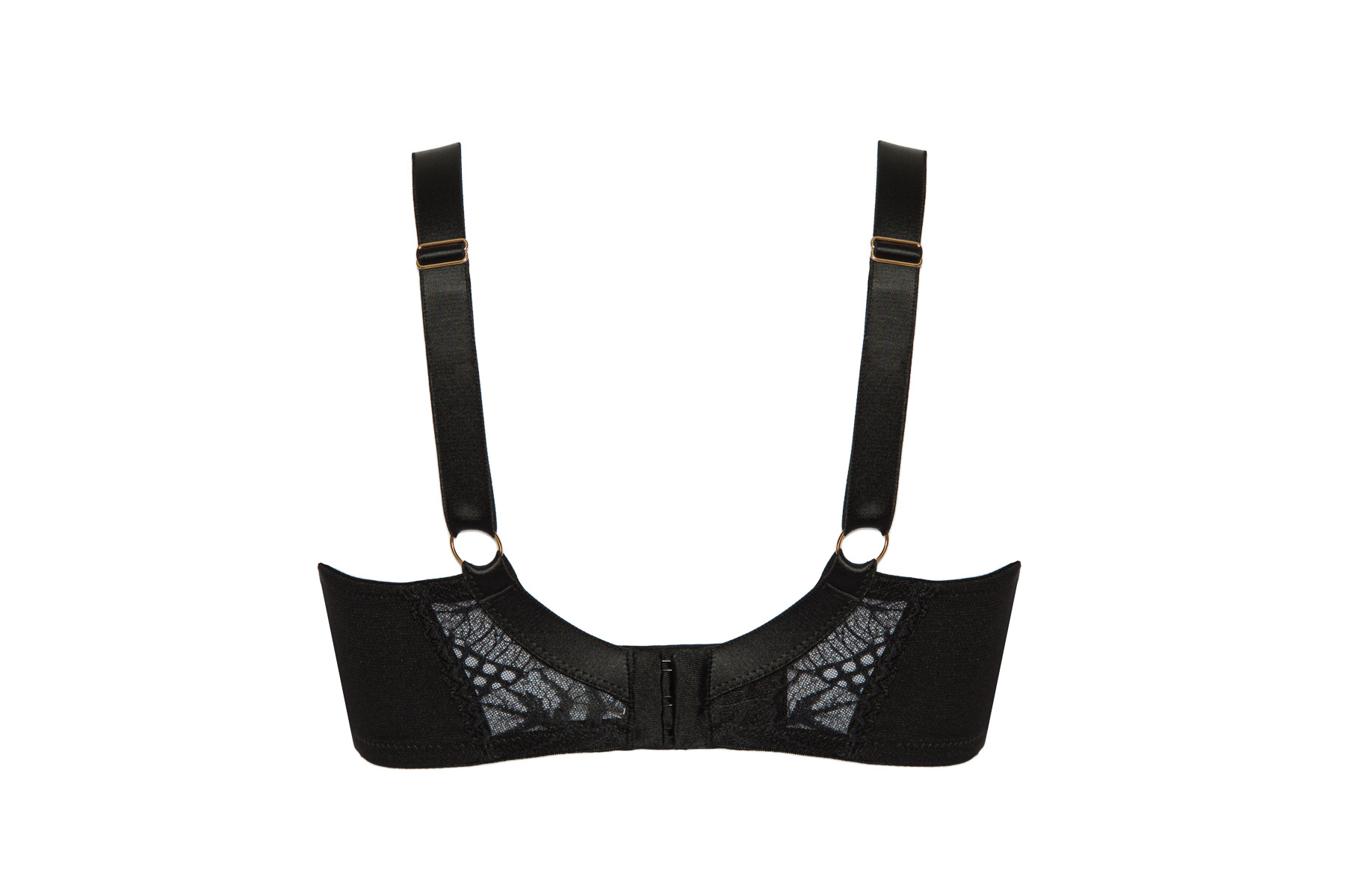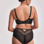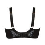 Бюстгальтер выполнен на косточках, с дополнительными боковыми поддержками, чашки шитые мягкие, внешняя сторона кружевная, продублированы черной сеткой, с боковым подкроем. Бретельки не отстгиваются, регулируются по длине. На спине застжка на удлинитель, количество крючков в ряду застжки, увеличивается пропорционально размеру бюстгальтера. В зоне декотьте дополнительные тонкие несъемные бретели, регулируемые по длине, фурнитура металлическая цвета желтого золота. Окантовка косточек и боковые поддержки декорированы атласными лентами. Бюстгальтер идеально сочетается с трусиками .Beverly M бюст (черн)