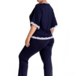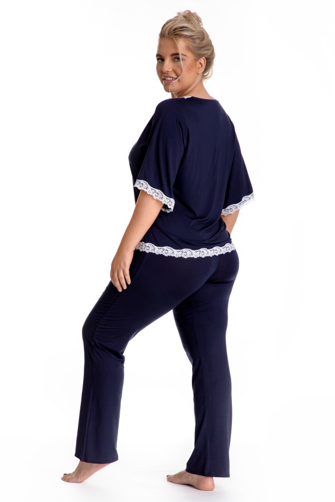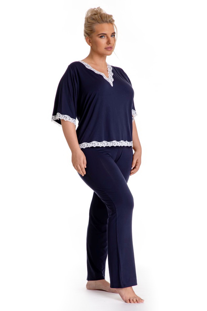 Комплект арт. в модном тмно-синем цвететуника с рукавом 1/2, с -образным вырезом, горловина, низ сорочки и рукавов украшены тонким белым кружевом