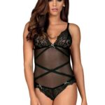 Очаровательное женское боди BONDEA от европейского производителя Obsessive. Выполнено из нежной эластичной сетки и цветочного кружева. Дополнено зелеными бантиками на бедрах и декольте. Несъемные регулируемые бретели. Специальная конструкция швейных линий ComfyCut обеспечит полный комфорт ношения.BONDEA Teddy Боди