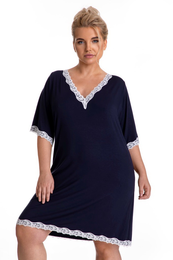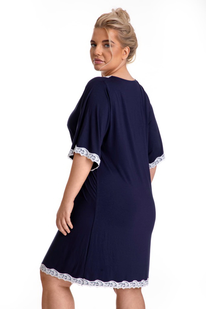 Сорочка арт. , с рукавом 1/2, с -образным вырезом, из тмно-синего полотна, горловина, низ сорочки и рукавов украшены тонким белым кружевом.Botje сорочка