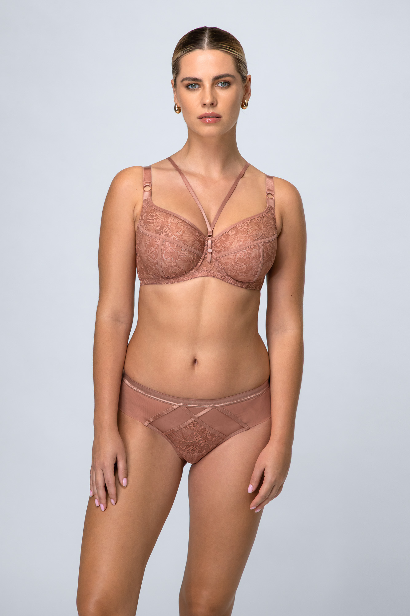 Трусики бразильяна из коллекции выполнены из сетки, сложенной вдвое, спереди кружевная вставка, на спинке -образный вырез. Ластовица проложена 100 хлопком.