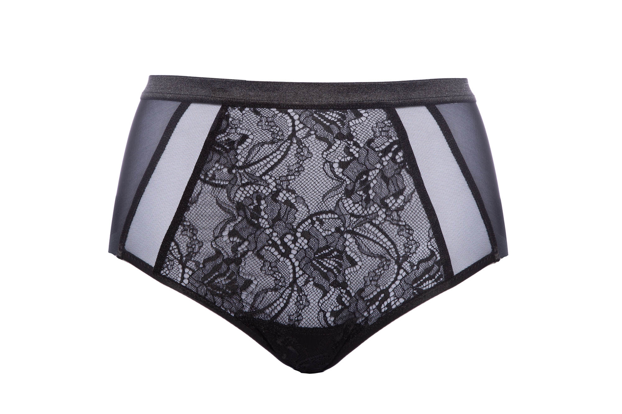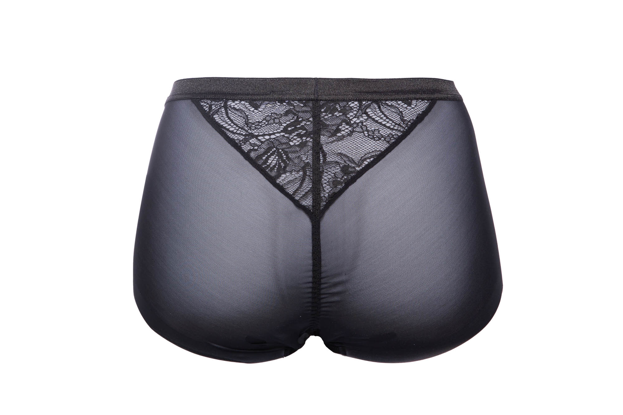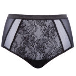 Трусики классические с высокой талией из коллекции выполнены в черном цвете из кружевного полотна и сетки, спинка из сетки с -образной вставкой кружева. Ластовица проложена 100 хлопком.Chiara трусы с завышенной талией (черн)