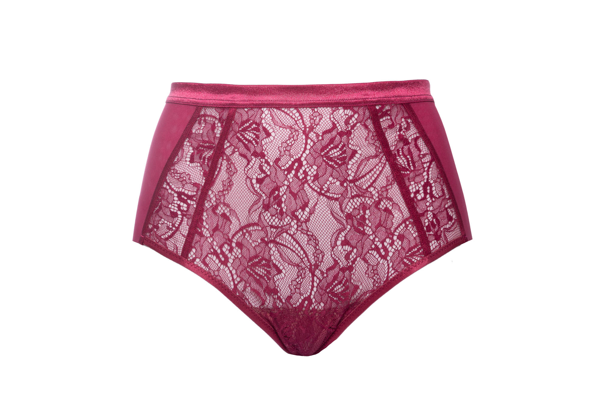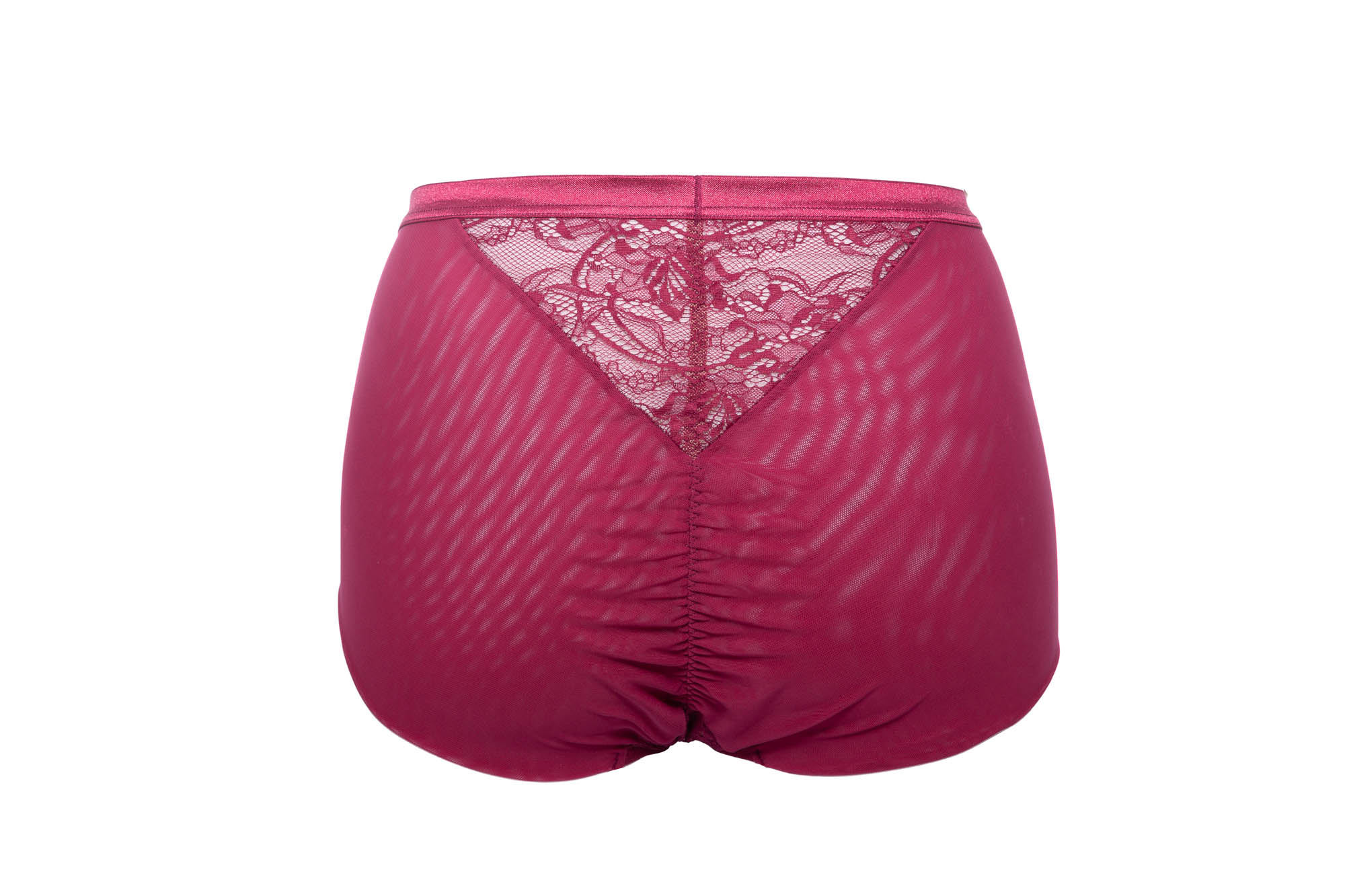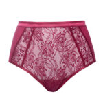 Трусики классические с высокой талией из коллекции выполнены в цвете фуксия из кружевного полотна и сетки, спинка из сетки с -образной вставкой кружева. Кружевные вставки продублированы телесной сеткой. Ластовица проложена 100 хлопком.Chiara трусы с завышенной талией (фуксия)