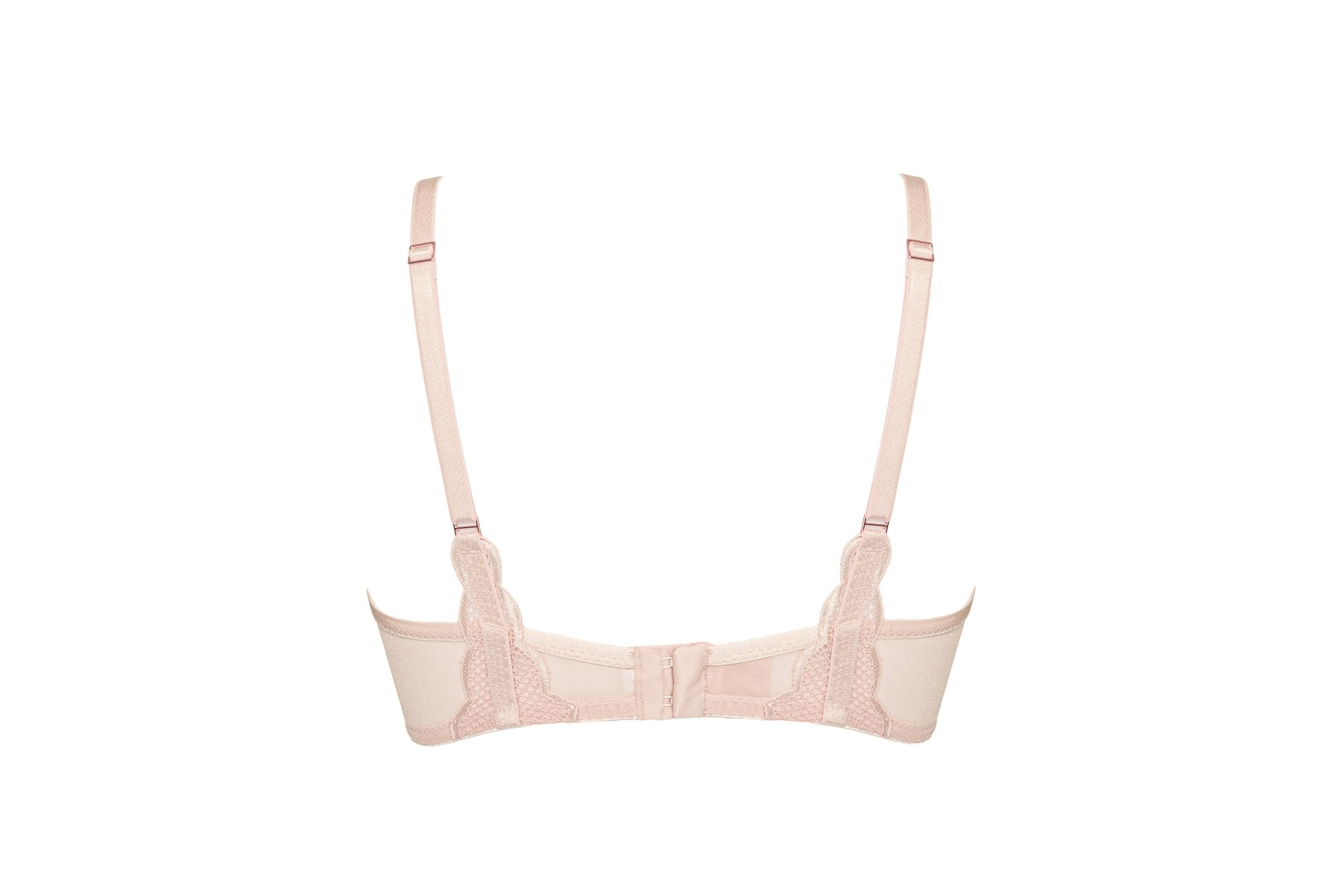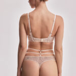 Бюстгальтер на косточках, чашки на тонком поролоне, со съмными пуш-ап вкладышами, внешняя сторона кружевная. Бретельки не отстгиваются, регулируются по длине. На спине застжка на удлинитель, количество крючков в ряду застжки, увеличивается пропорционально размеру бюстгальтера. Бюстгальтер идеально сочетается с трусиками .