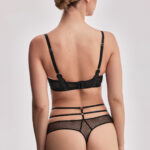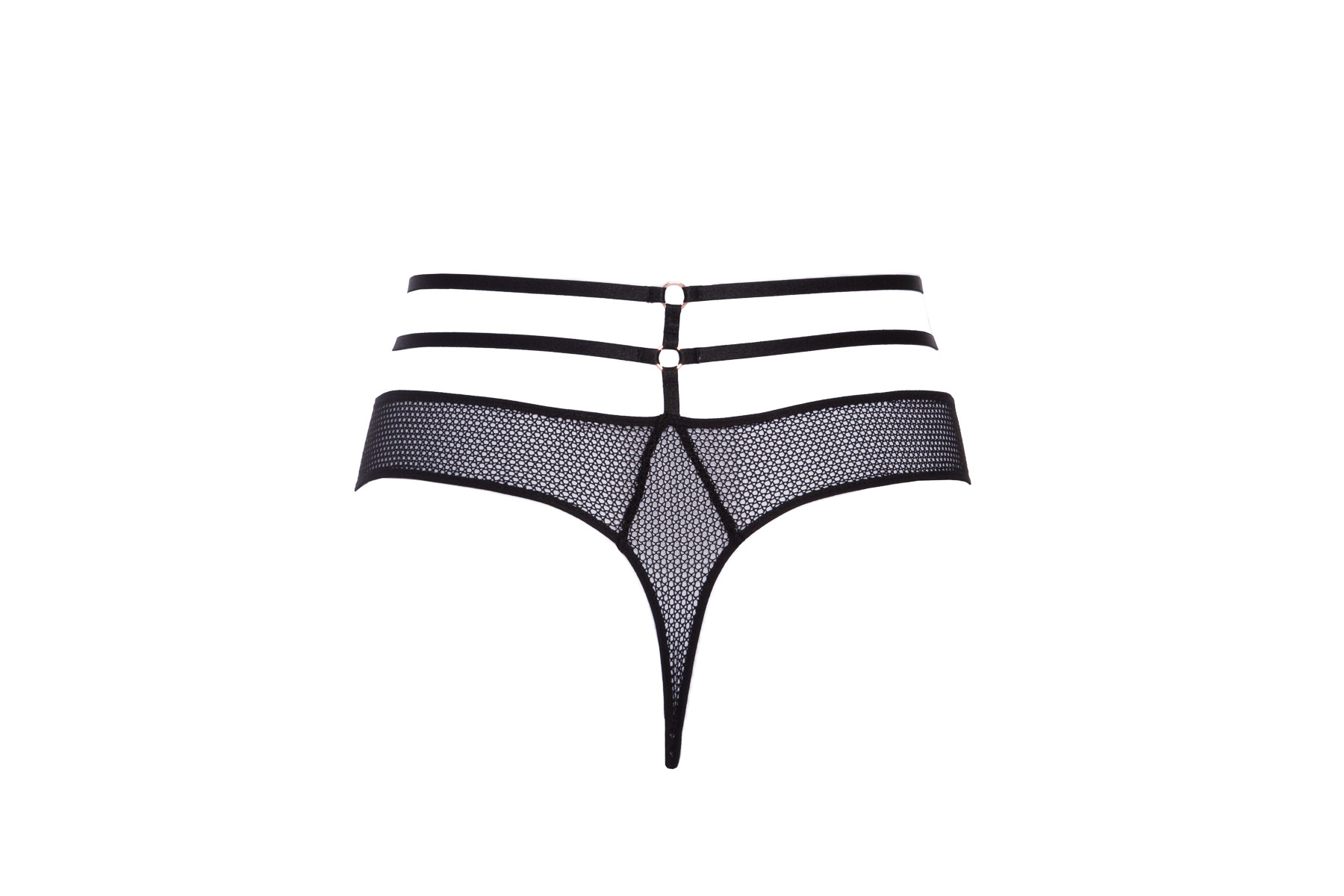 Трусики стринг из коллекции выполнены из эластичного кружевного полотна, спереди продублированы телесной сеткой, талию охватывают перекрещенные узкие резинки. Ластовица из 100 хлопка. Идеально сочетаются с бюстгальтерами .
