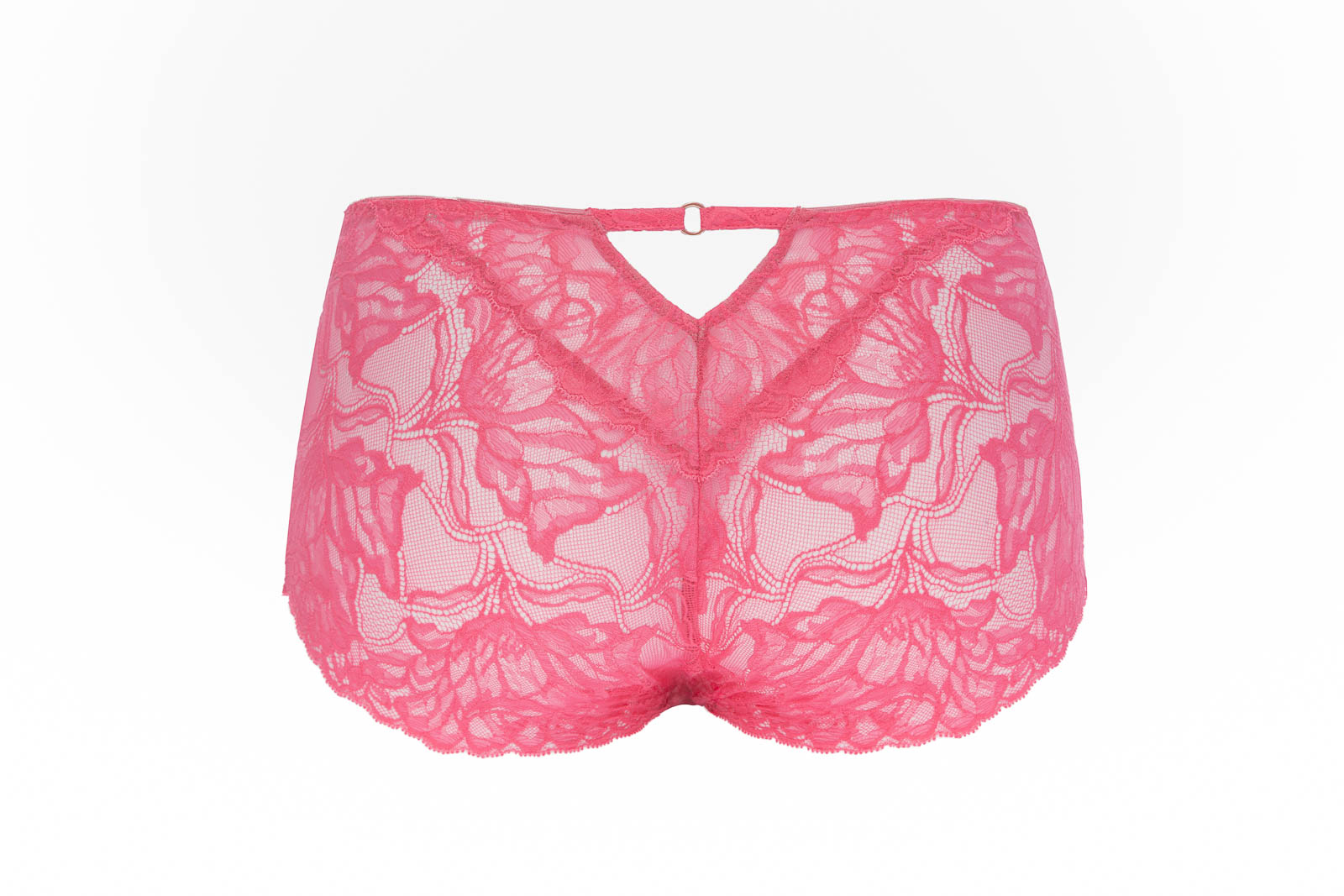 Трусики классические с высокой талией из коллекции выполнены из кружевного полотна и сетки, на спинке -образный вырез украшен металлическим аксессуаром. Ластовица проложена 100 хлопком.