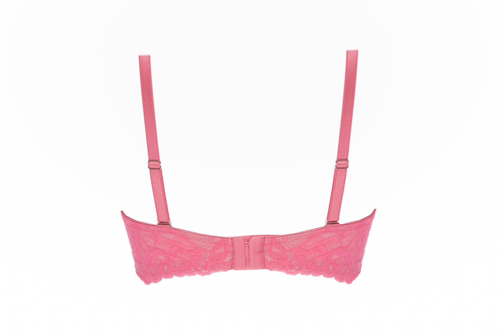 Бюстгальтер из коллекции выполнен с мягкими чашечками на косточках на каркасах, чашки шитые из роскошного кружева с цветочным рисунком, продублированы тканью в тон. Бретельки регулируются по длине, отстгиваются на спинке. На спине застжка на удлинитель, количество крючков в ряду застжки увеличивается пропорционально размеру бюстгальтера, пояс кружевной продублирован сетчатой тканью. Фурнитура металлическая цвета меди. Бюстгальтер идеально сочетается с трусиками из коллекции .