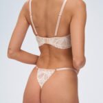 Бюстгальтер выполнен на основе бюста с мягкими чашечками на косточках, с дополнительными боковыми поддержками, чашки шитые из кружева, окантовка косточек на чашках декорирована атласной лентой. Бретели регулируются по длине, не отстгиваются, спинка из кружева продублирована телесной сеткой. На спине застжка на удлинитель, количество крючков в ряду застжки увеличивается пропорционально размеру бюстгальтера, фурнитура металлическая цвета розового золота. Бюстгальтер идеально сочетается с трусиками . Вдохновлнная культовым французским десертом, коллекция сочетает в себе тплые, ванильные оттенки кружева с мерцающим бежево-золотым атласом, чей блеск напоминает карамельную глазурь.CremeBrulee M balcony бюст