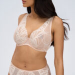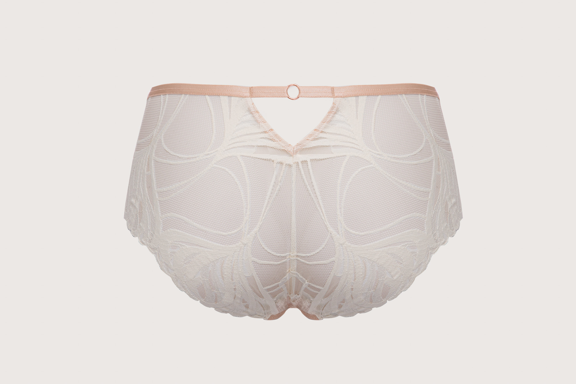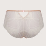 Трусики слип со средней линией талии из коллекции выполнены из роскошного кружева и сетки, спереди продублированы телесной сеткой, на спинке -образный вырез. Ластовица проложена 100 хлопком телесного цвета. Ажурная фактура материалов придат модели воздушность, а деликатное сияние подчркивает их элегантность.CremeBrulee трусы