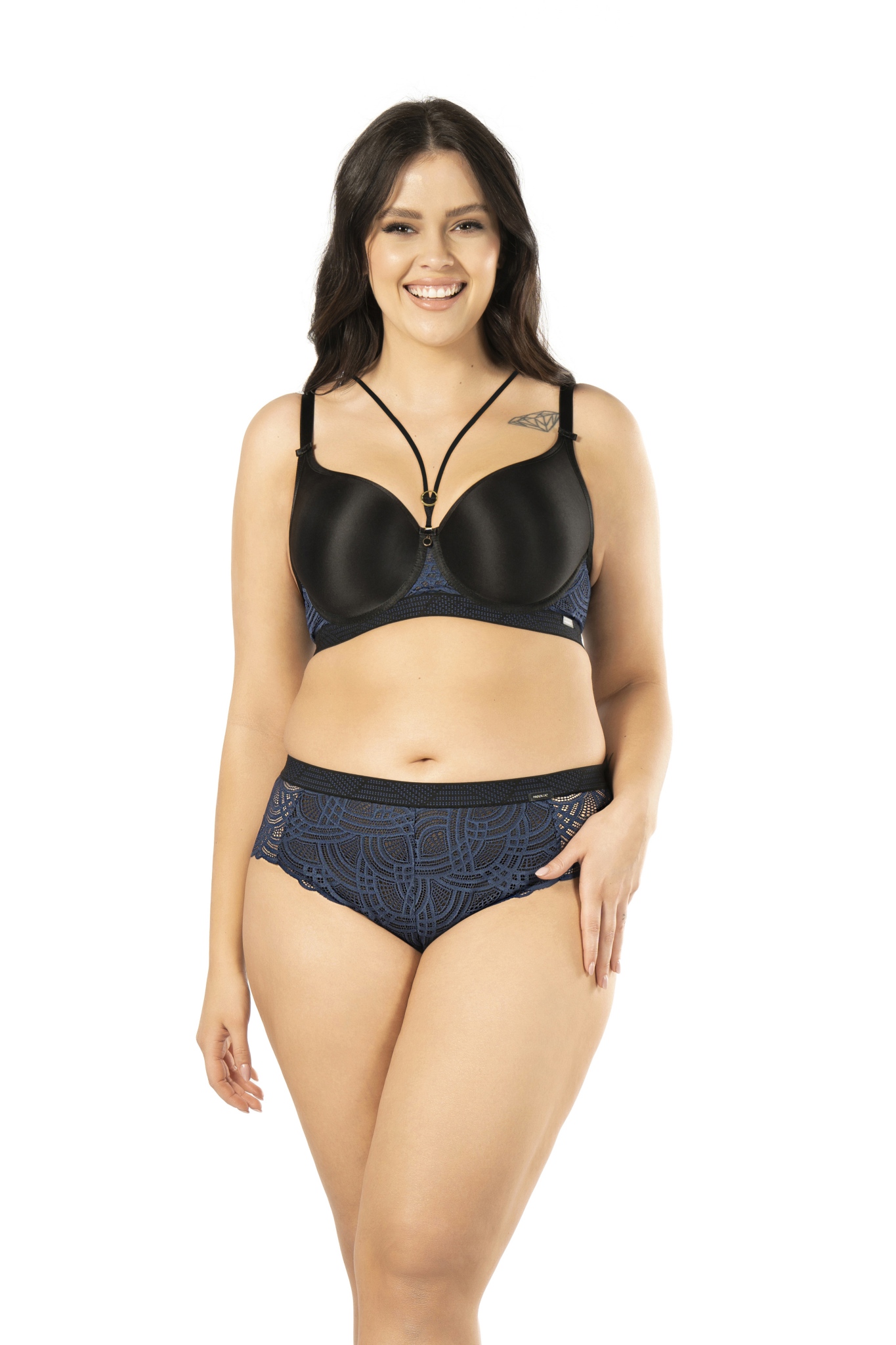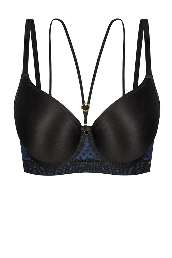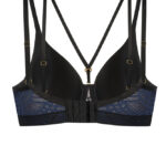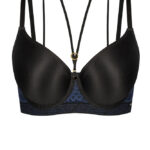 Бюстгальтер из гибридной пены сочетание чашки спейсер и формованной чашки, на косточках, внешняя сторона гладкая, спинка из темно-синего кружева продублирована черной сеткой. Бретельки пришиты, регулируются по длине. На спине застжка на удлинитель. Отлично сочетается с трусами .Debora U бюст BF31