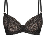 Бюстгальтер из коллекции чашки формованные телесного цвета, с несъмным силиконовым пуш-апом, на косточках, с дополнительными боковыми поддержками, внешняя сторона чашек покрыта кружевом, спинка из кружева продублирована телесной сеткой. Бретельки отстегиваются, регулируются по длине. На спине застжка на удлинитель, фурнитура металлическая цвета меди. Бюстгальтер идеально сочетается с трусиками из коллекции .Desire push up бюст BP34 (черн)